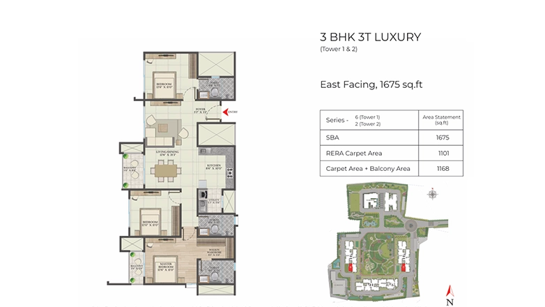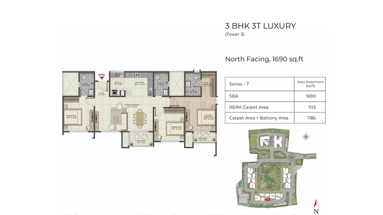 | 3 BHK + 3T | 1675 Sqft - 1770 Sqft | Rs. 1.79 Cr to Rs. 1.89 Cr* |