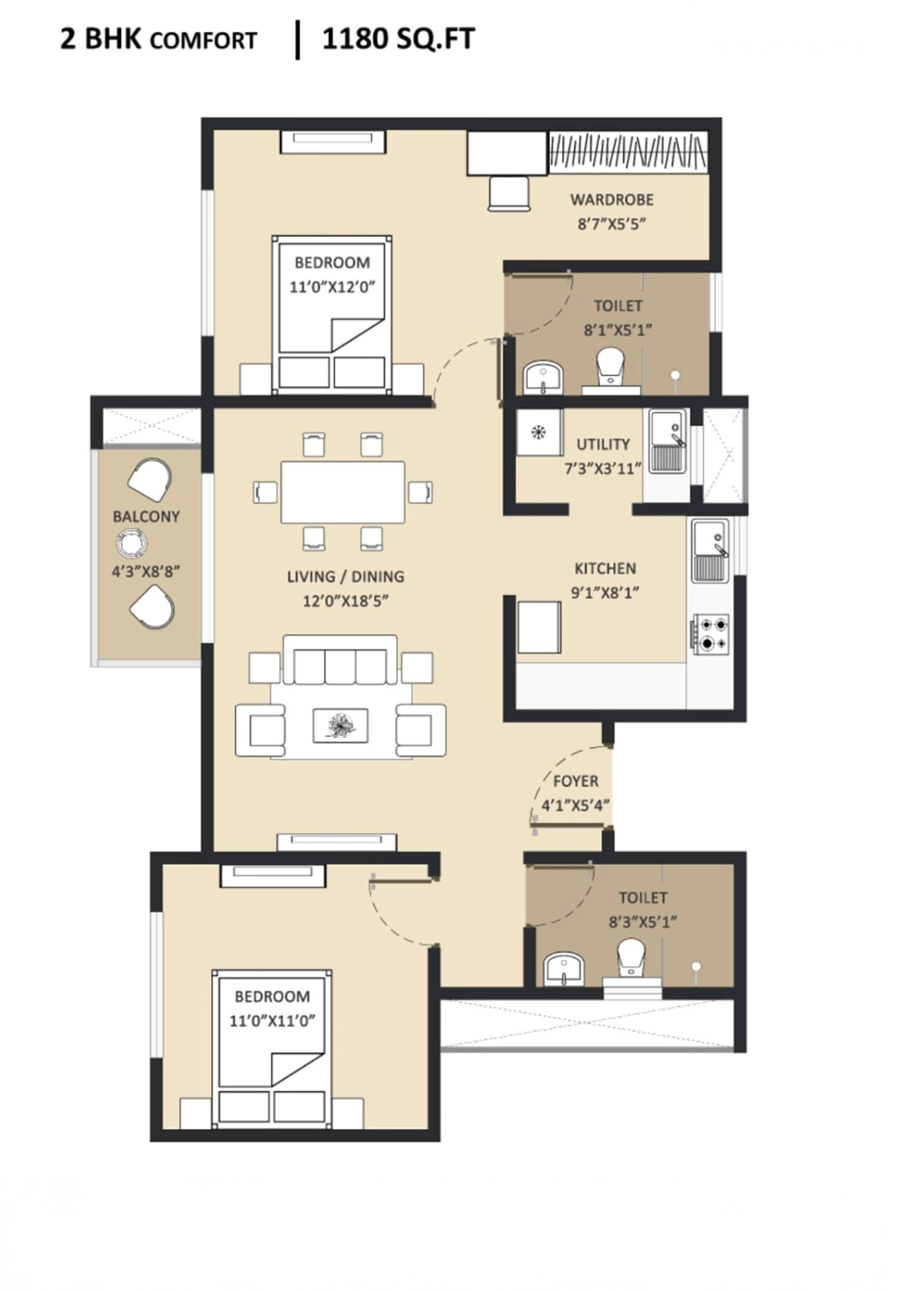 | 2 BHK | 1180 sq.ft | 1.15 Cr* Onwards |