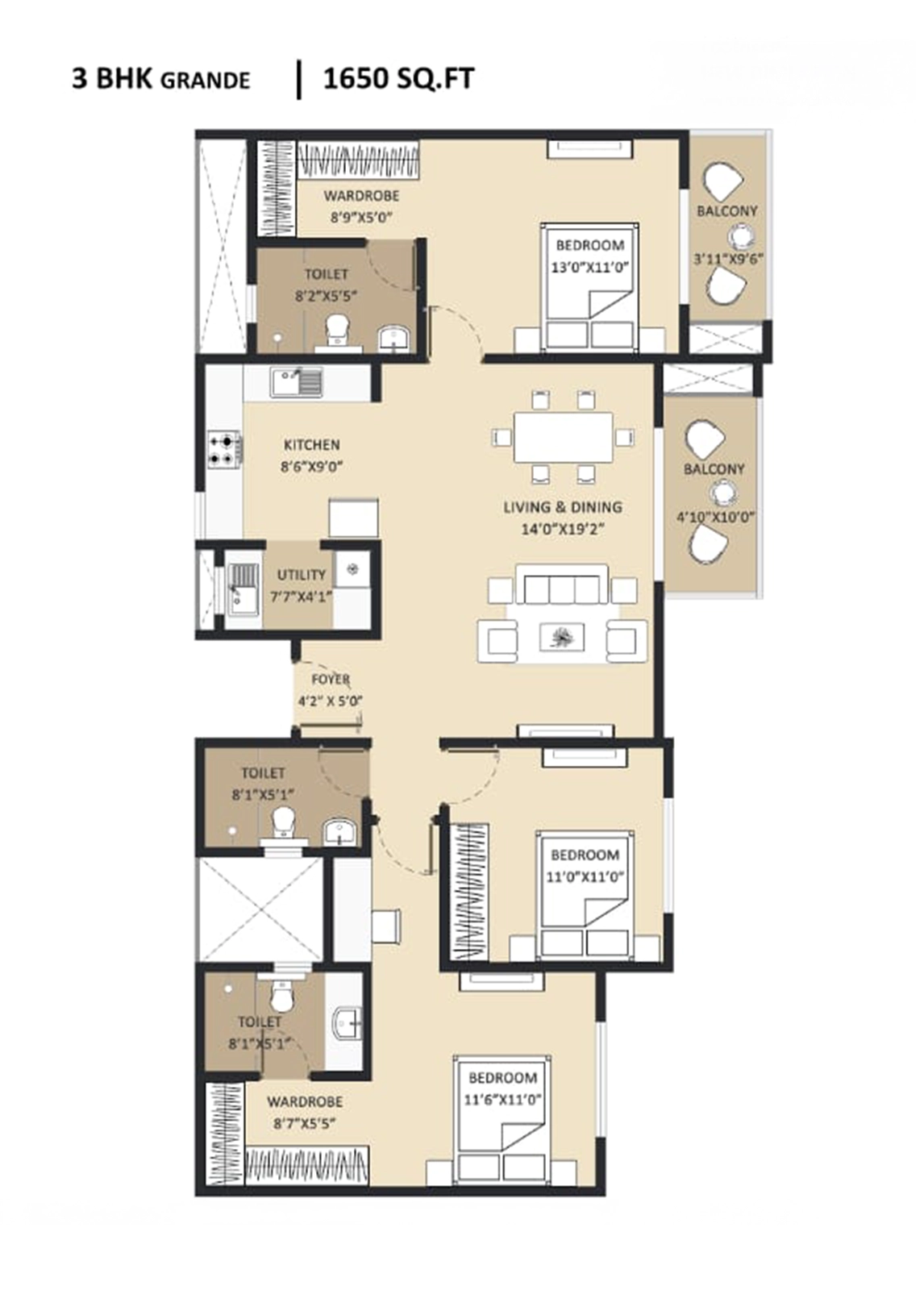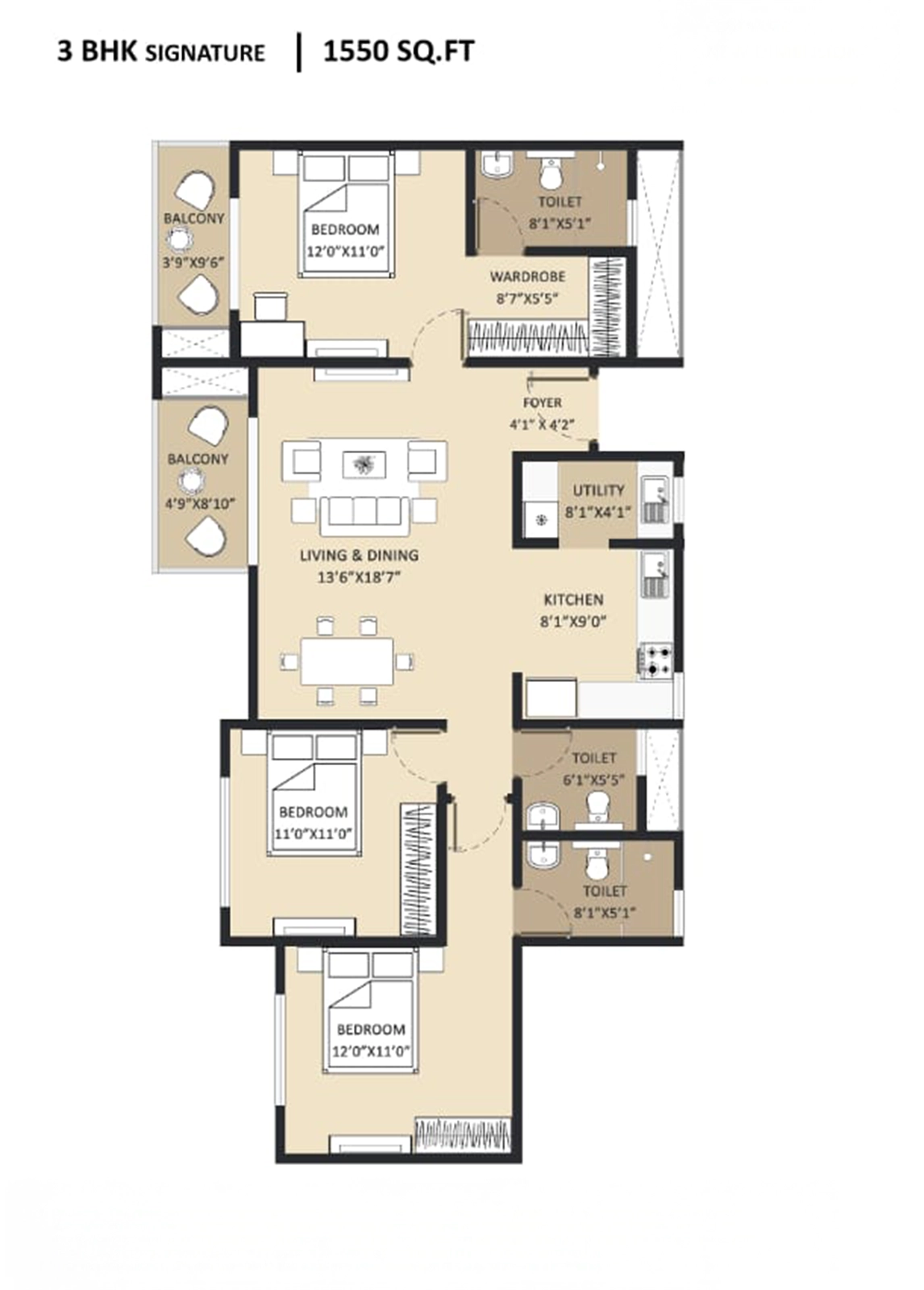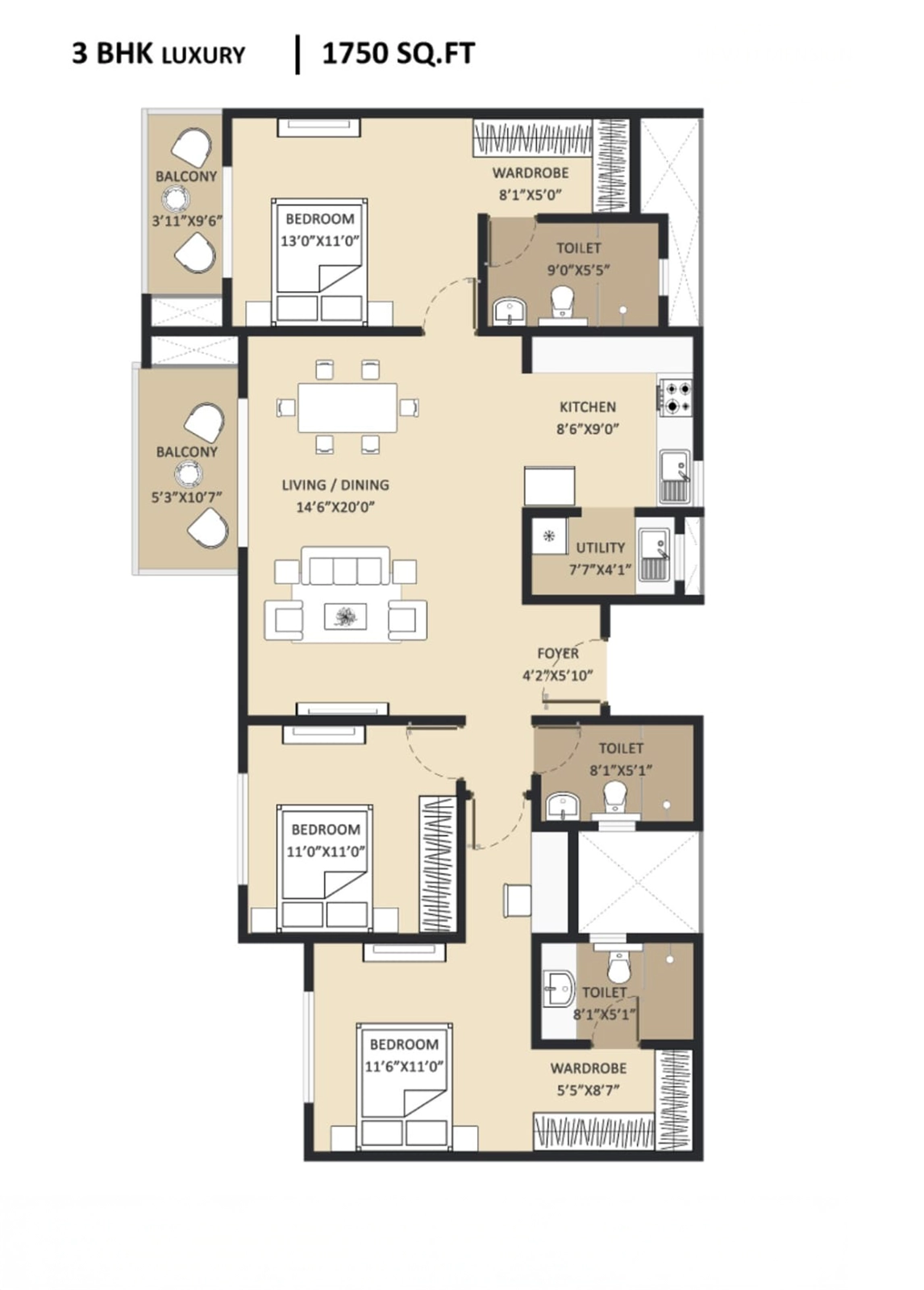 | 3 BHK (Luxury) | 1645 -1755 sq.ft | 1.59 - 1.69 Cr* Onwards |