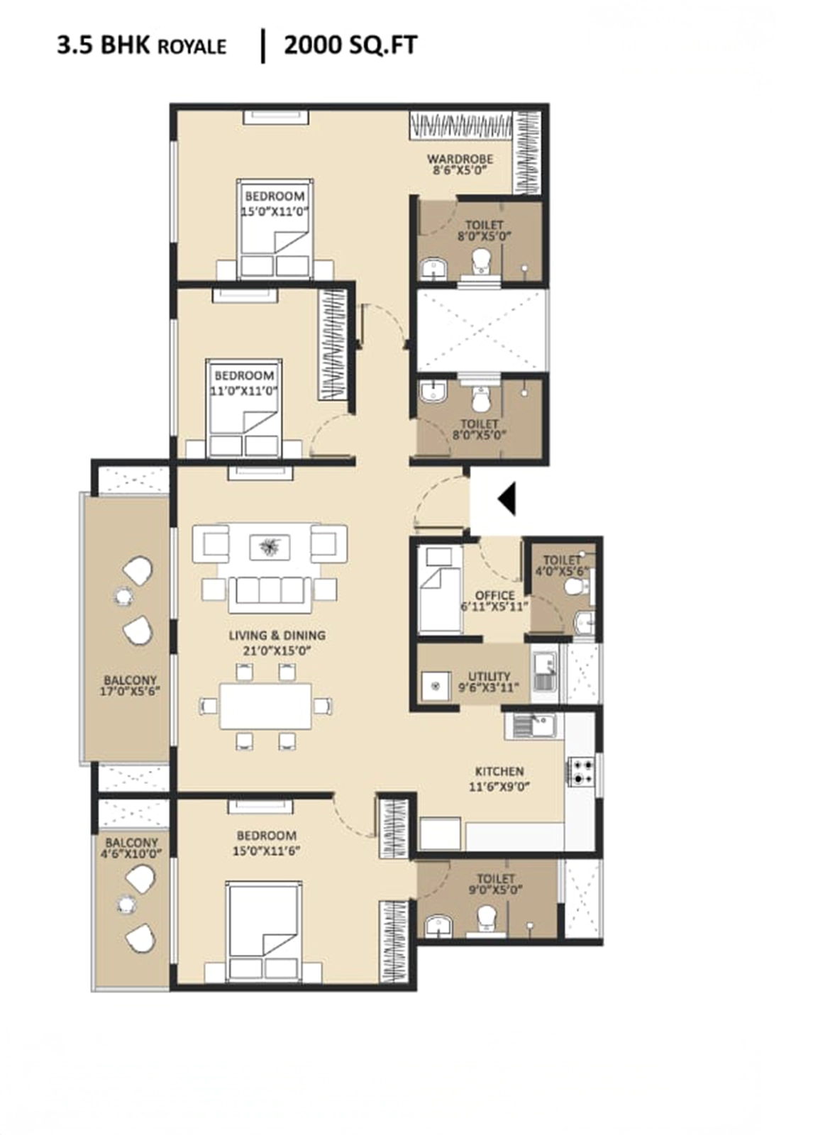 | 3.5 BHK (Presidential) | 2000 sq.ft | 2.00 Cr* Onwards |