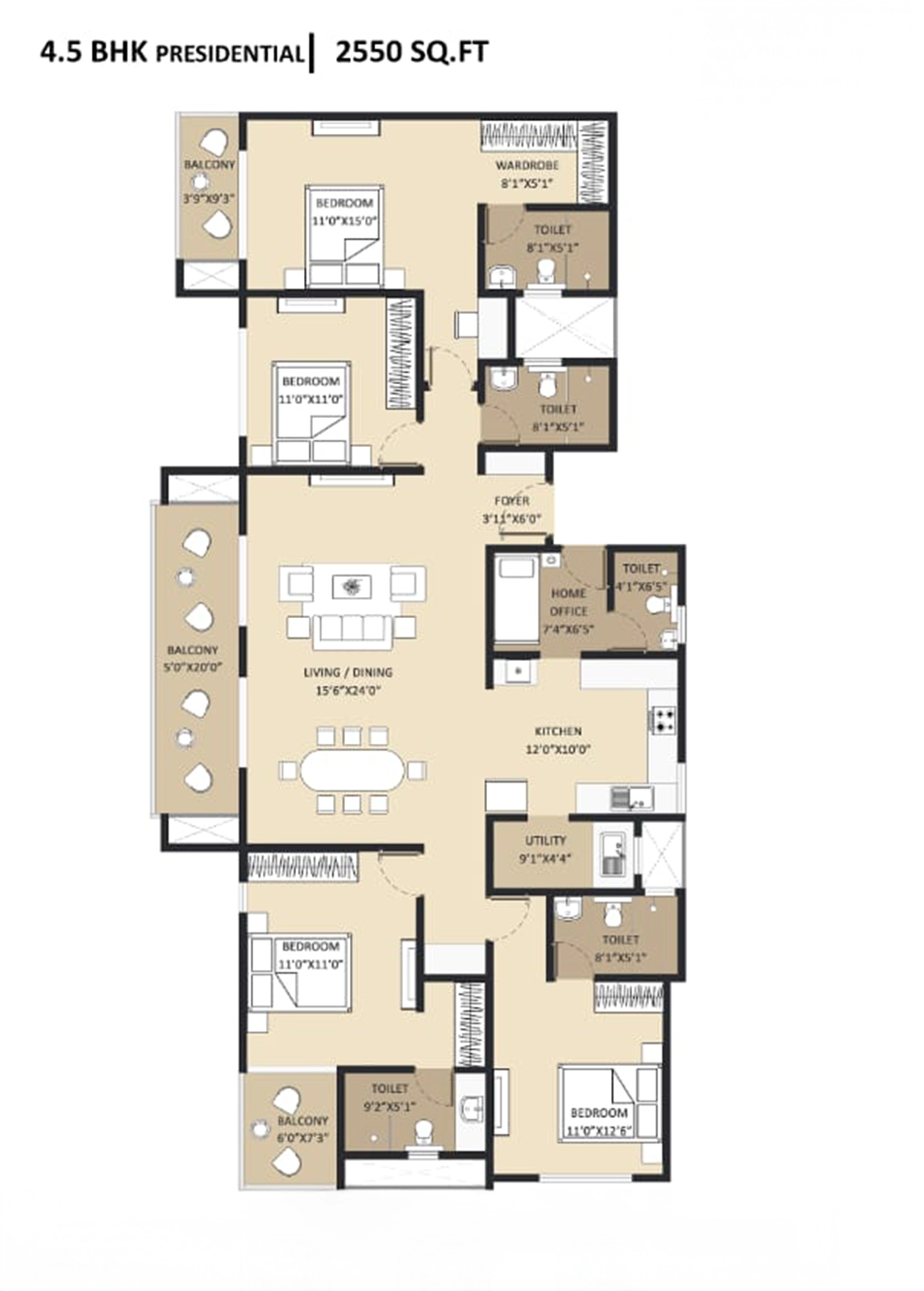 | 4.5 BHK (Presidential) | 2535 sq.ft | 2.54 Cr* Onwards |